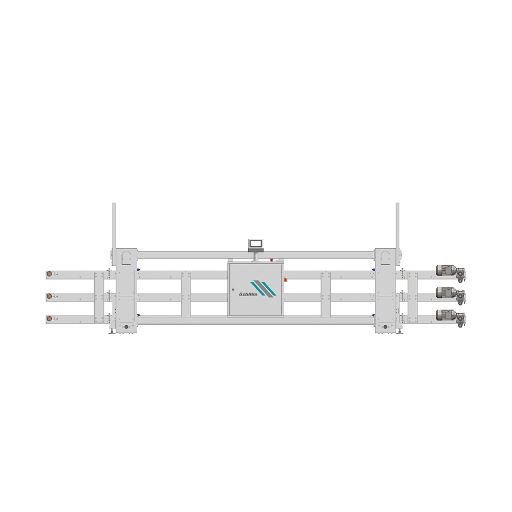 - Makine hareketi ile senkronize çift konveyörlü serim sistemi.