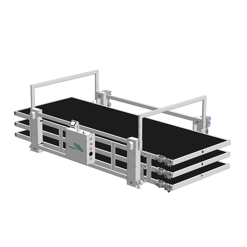 Üç katlı PVC konveyör banttan oluşan yapı, pastallarının verimli bir şekilde depolanması ve transferi için tasarlanmıştır. Her kat serim masaları veya kesim makineleriyle hizalanabilir şekilde dikey yönde hareket edebilir . Bu tasarım, kesimhanelerde daha kompleks ve verimli planlamalara olanak tanır.